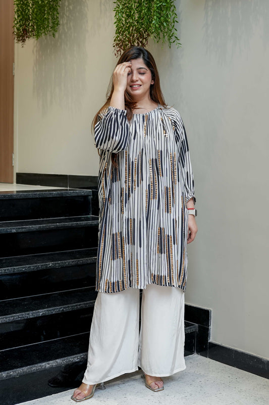 Out of StockVendor:LaGlitsGauhra Black Stripes Cord Set With Sequins Detailing