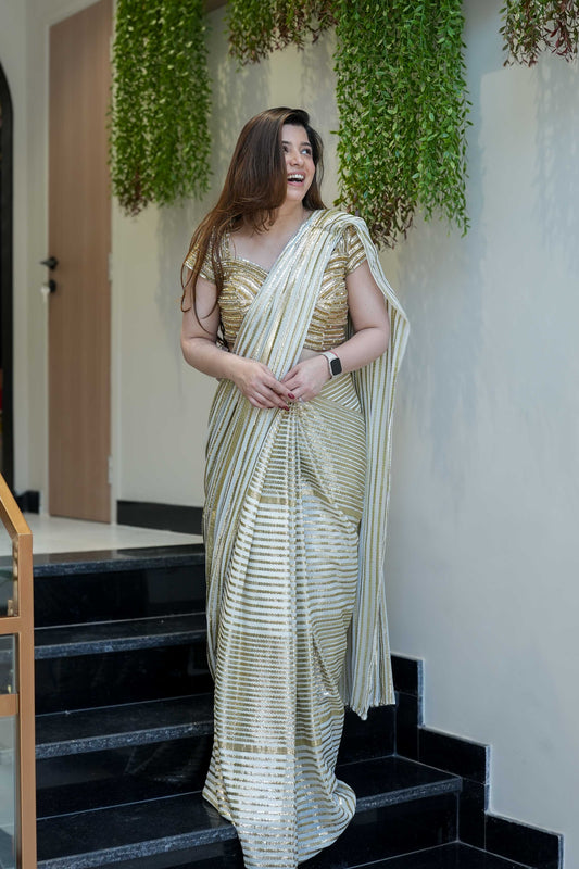 Out of StockVendor:LaGlits luxeHeefa Golden Embroidered Blouse Drape Saree