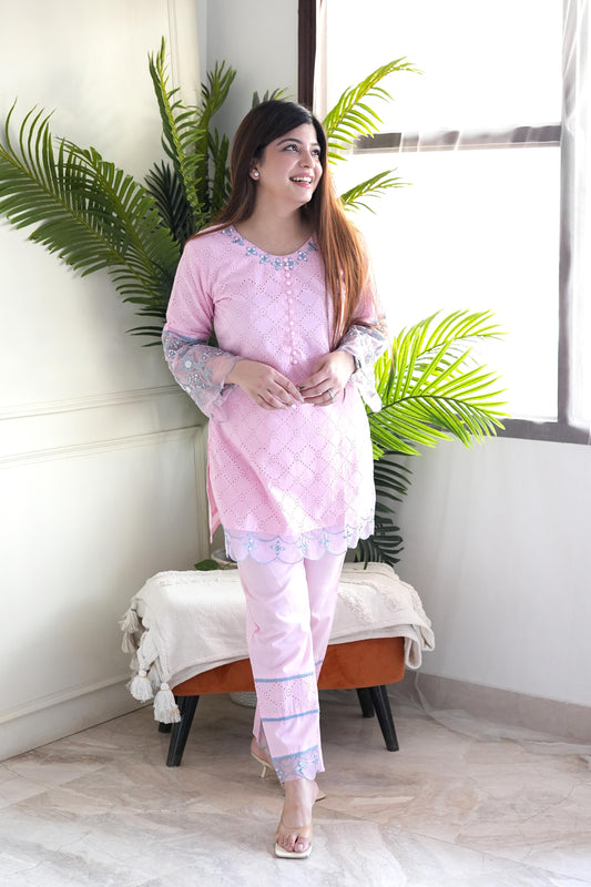 Out of StockVendor:LaGlitsInayat Pink Schiffli Embroidered Cordset