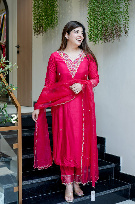 Out of StockVendor:LaGlitsAnvi Hot Pink Embroidered Suit Set