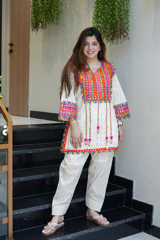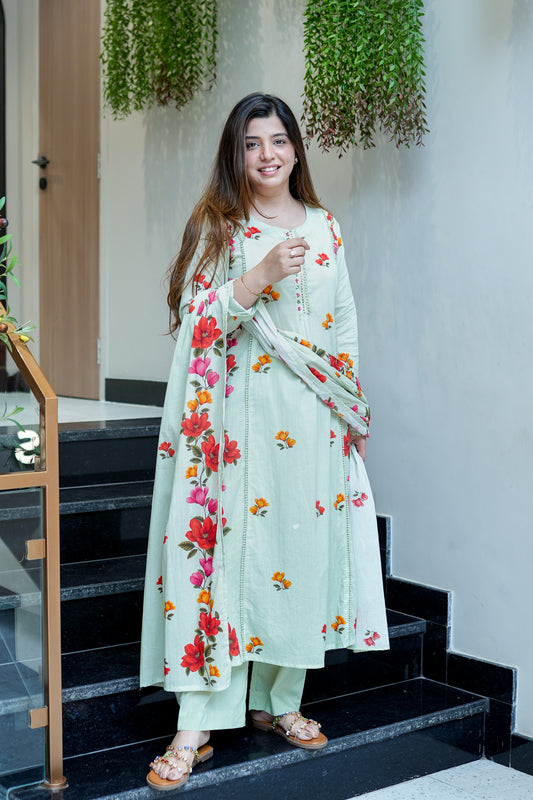 Out of StockVendor:LaGlitsSahni Floral Anarkali Set with Schiffli Detailing