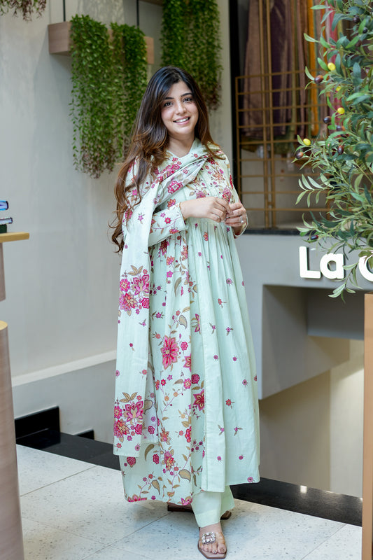 Out of StockVendor:LaGlitsSimar Pink Printed Muslin Suit set