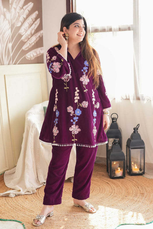 Out of StockVendor:LaGlitsSurma Wine Embroidered Velvet Cord Set