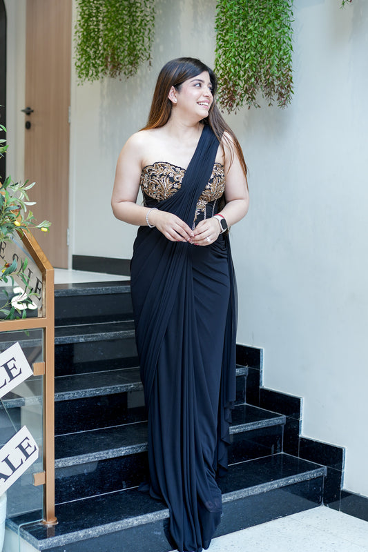Viha Blue Hand Embroidered Fish Cut Drape Saree