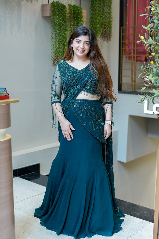 Vinisa Green Drape Saree