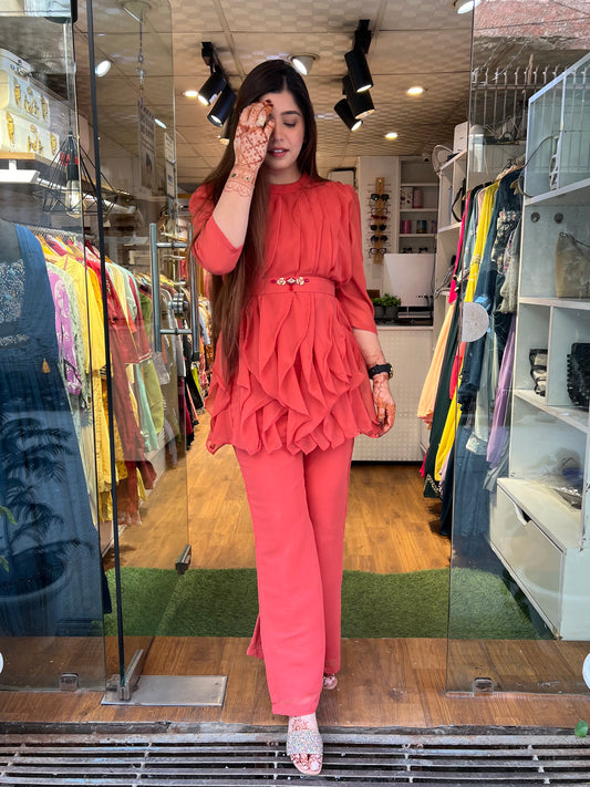 Out of StockVendor:LaGlitsZeera Rust Frill Cordset With Belt