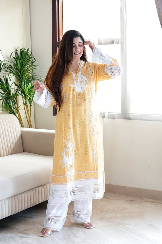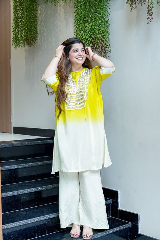 Out of StockVendor:LaGlitsZiya Yellow Embroidered Co ord Set