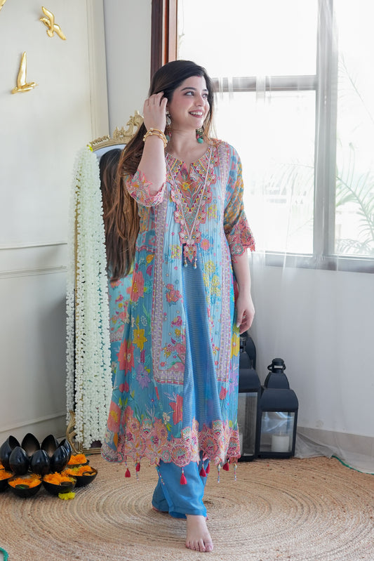 Out of StockVendor:LaGlitsVibha Luxe Blue Plazo Set