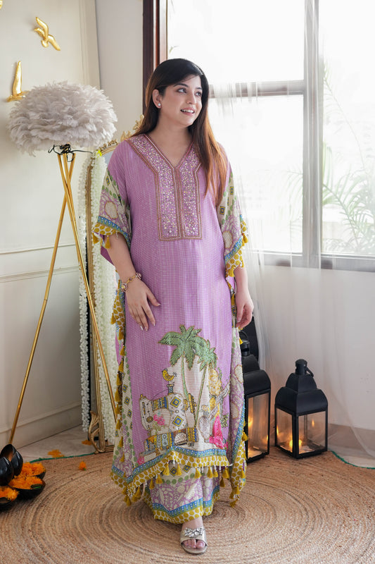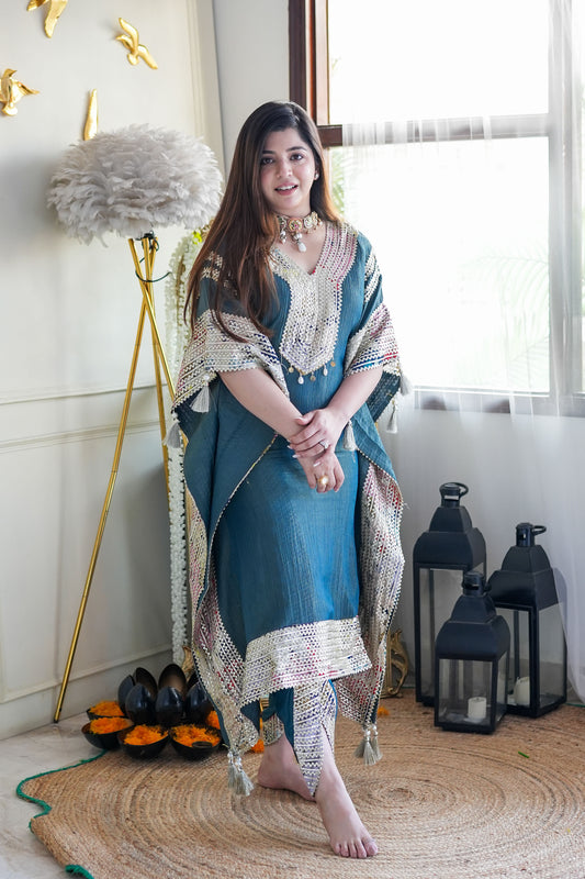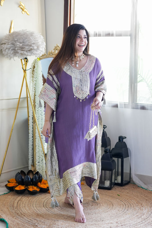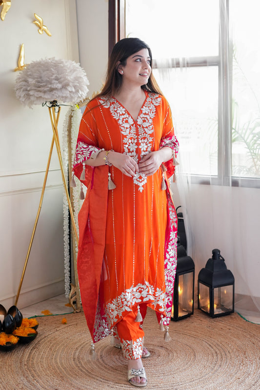 Out of StockVendor:LaGlitsNazma Orange Gota Detailing Kaftan Set