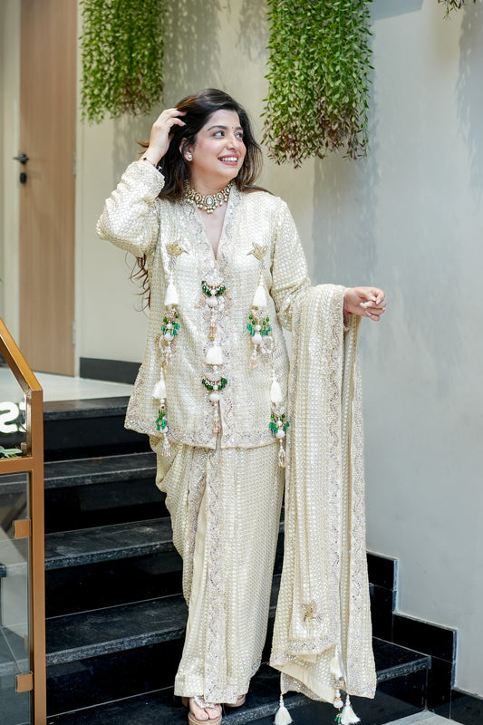Vendor:LaGlitsAqsa Champagne Luxe Suit SetRegular price From ₹ 23,990.00Regular priceUnit price / per-