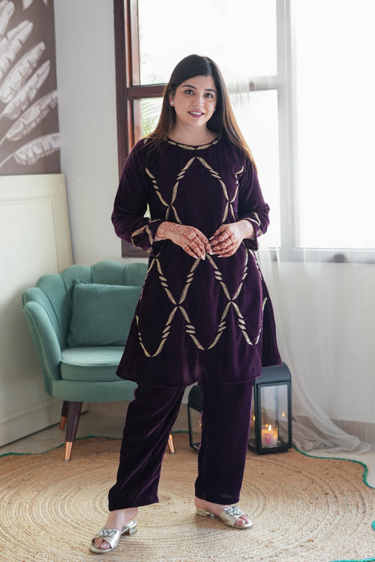 Nirva Wine Velvet Cord Set