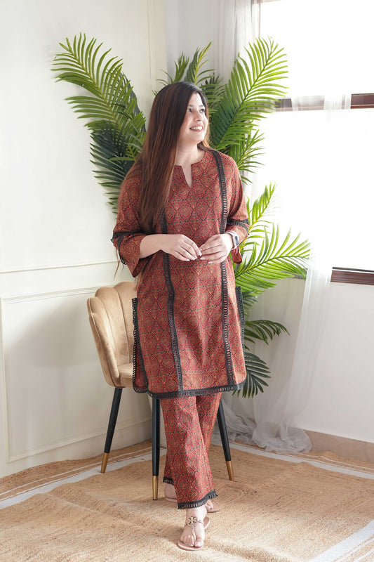 Heer Brown Printed Plazo Set