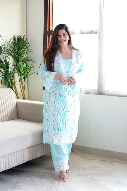 Farah Blue Cutwork Plazo Set