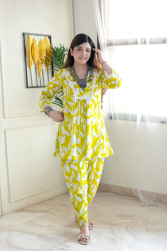 Out of StockVendor:LaGlitsNoor Yellow Printed Co ord Set with Lace Detailing