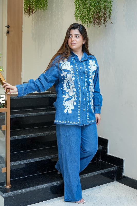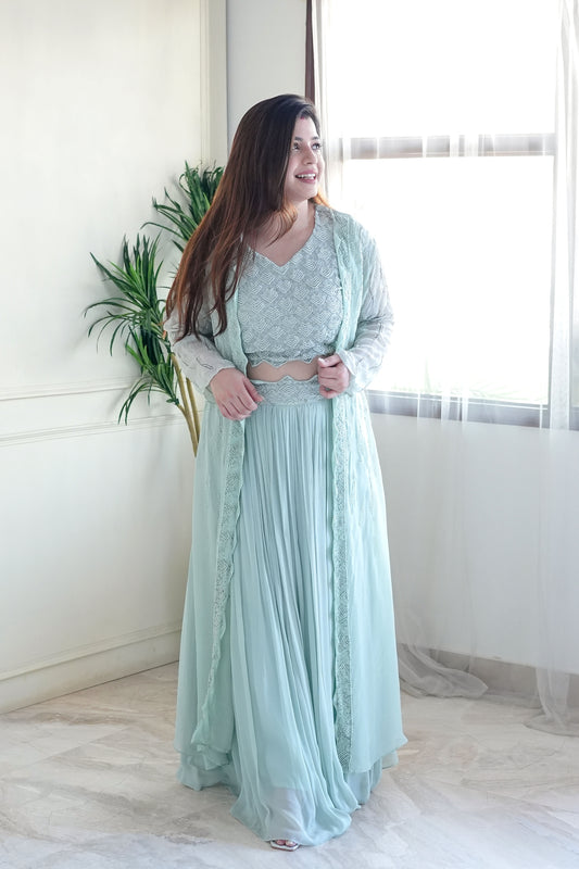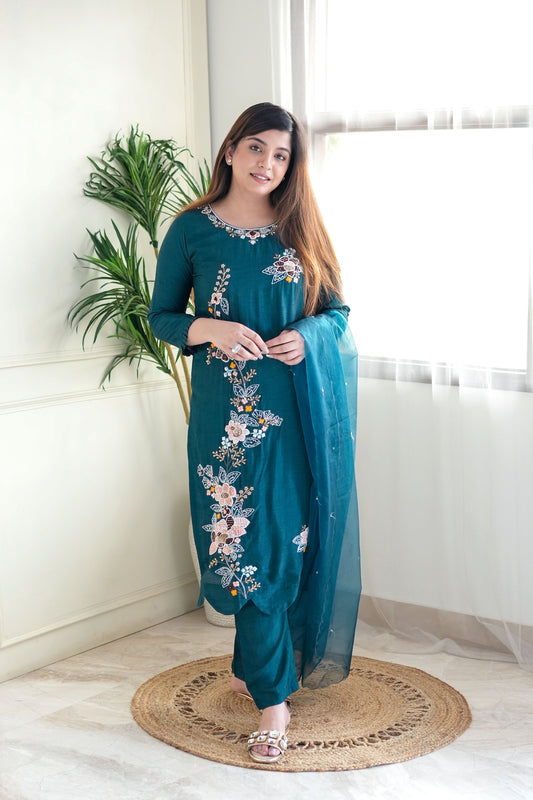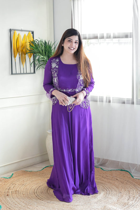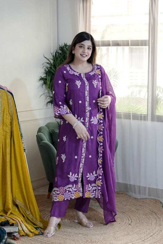 Mreeyal Purple Thread Embroidered A line Suit Set