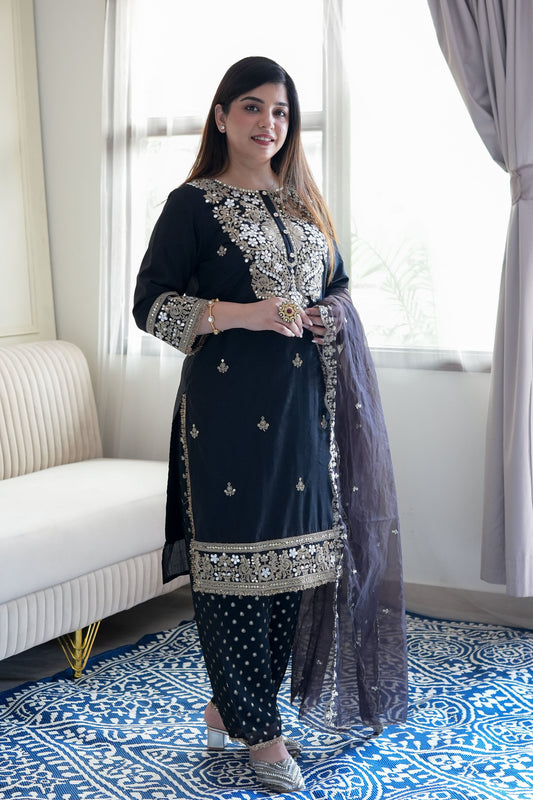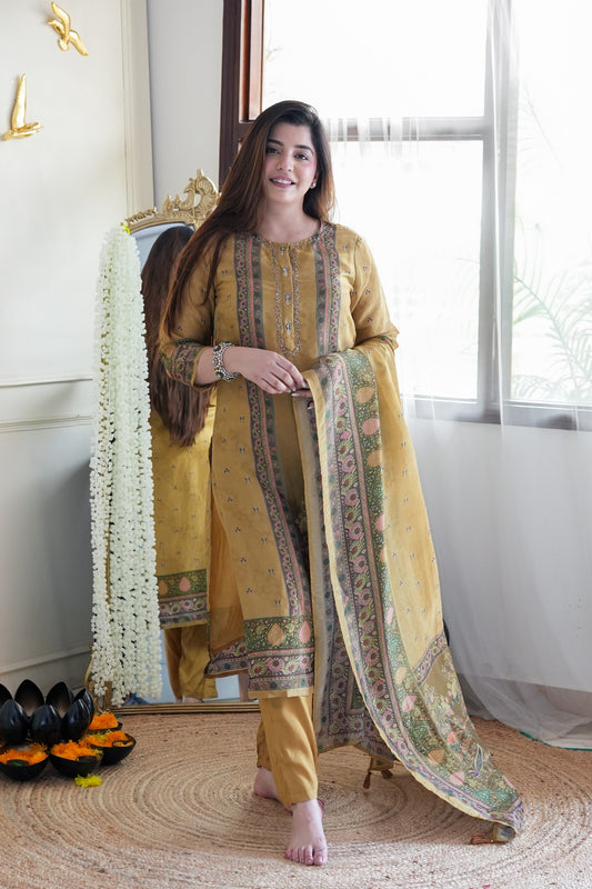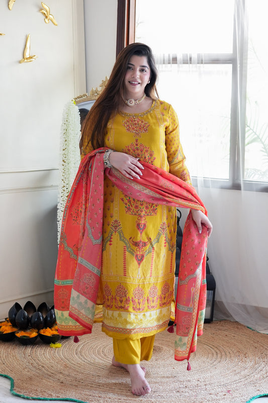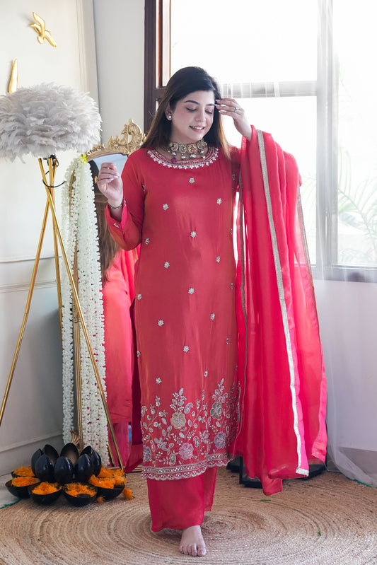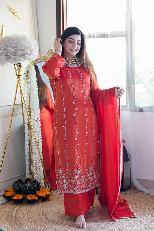 Reena Red Shimmer Tissue Embroidered Suit Set