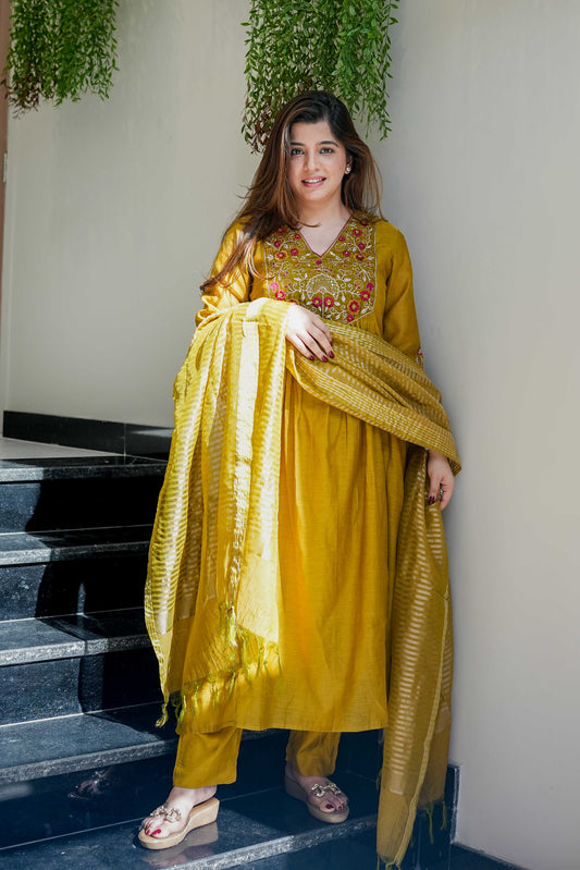 Resham Yellow Thread Embroidered Anarkali Suit Set