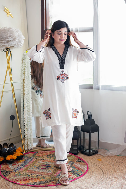 White Patch Work Plazo Set