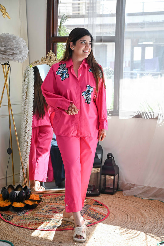 Pink Embroidred Patch Cord Set