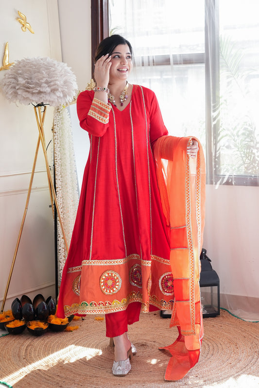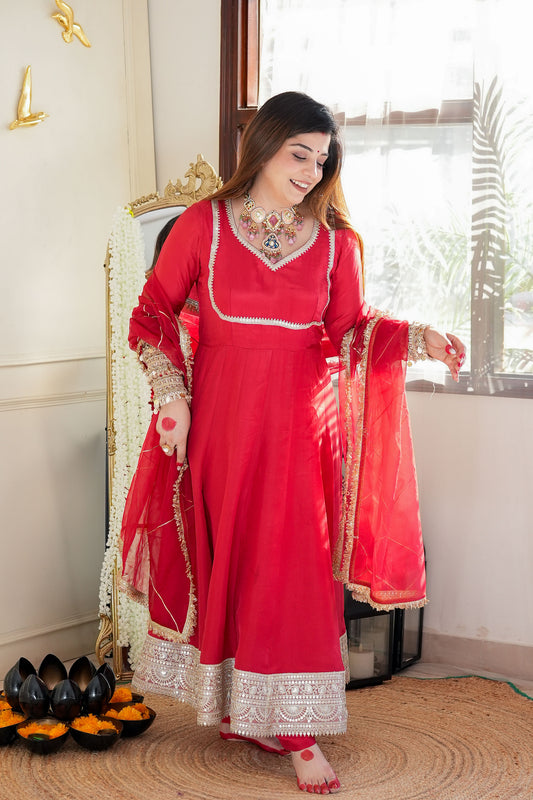Out of StockVendor:LaGlitsDevi Red Gotta Detailing Anarkali Suit Set