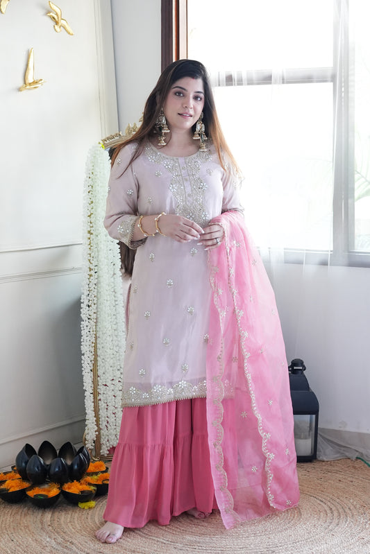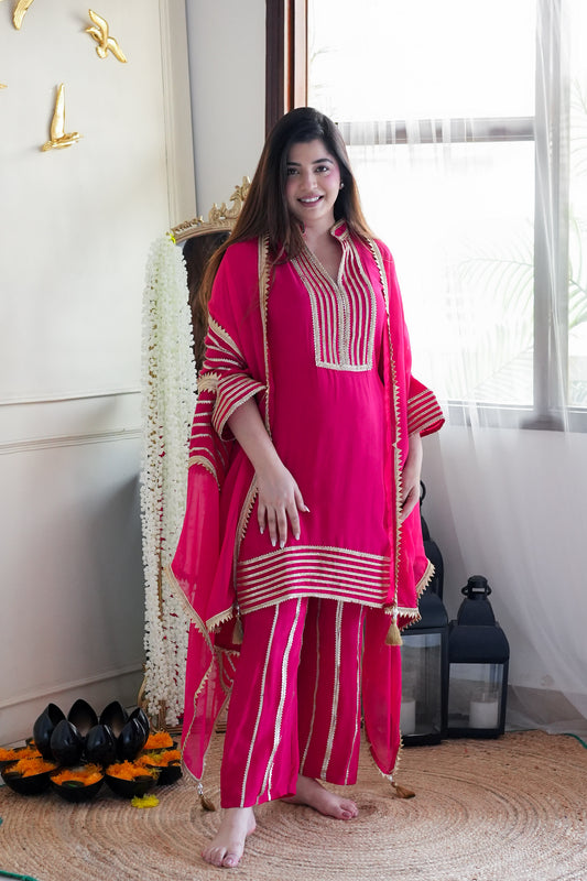 Out of StockVendor:LaGlitsSaagri Pink Gotta Detailing Suit With Cape
