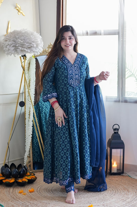 Out of StockVendor:LaGlitsNeyah Blue Cutwork Anarkali Suit