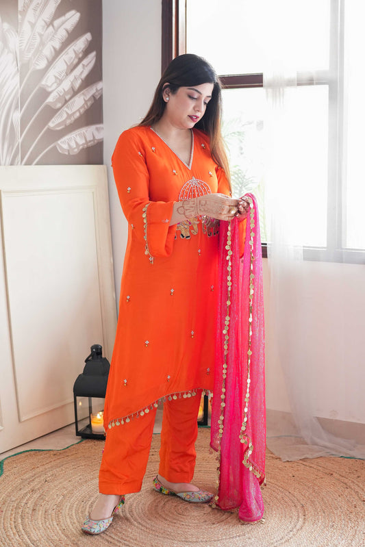Out of StockVendor:LaGlitsInayat Orange Suit With Pink Dupatta