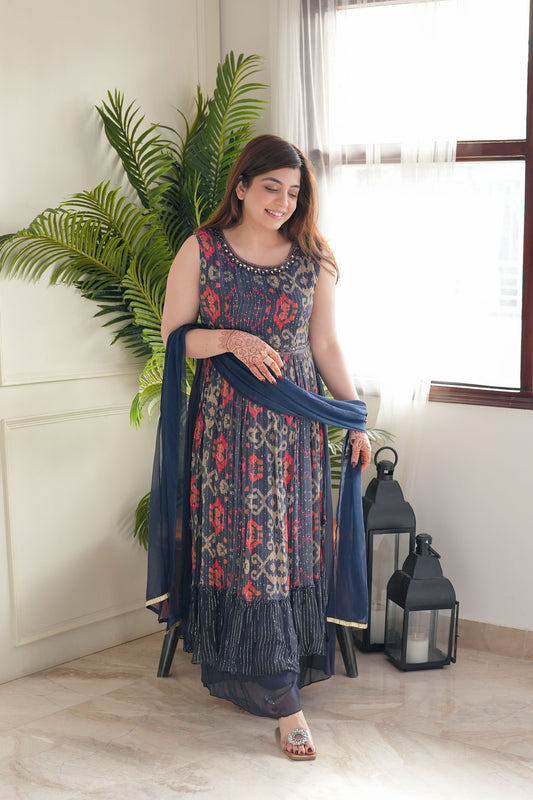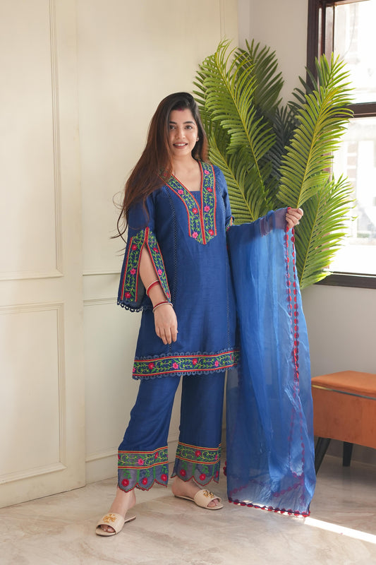 Out of StockVendor:LaGlitsRajha Blue Thread Work Silk Suit
