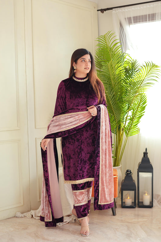 Out of StockVendor:LaGlitsIlahi Purple Embroidered Suit Set