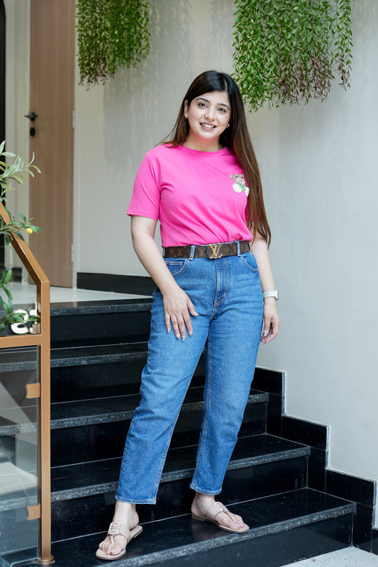 Rianna Pink Teddy Embellished Tshirt