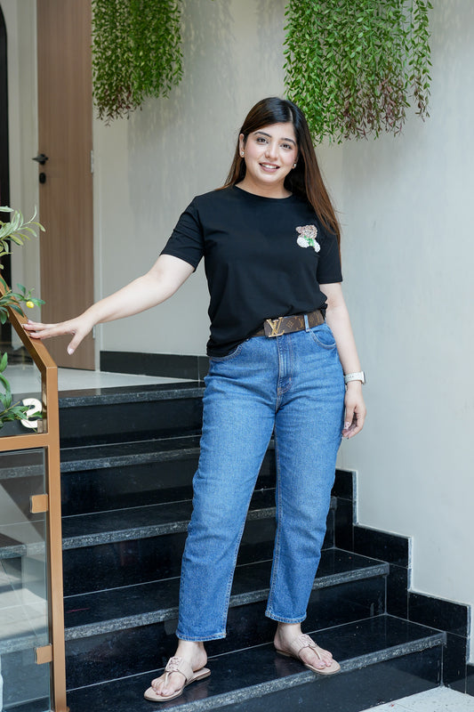 Rianna Black Teddy Embellished Tshirt
