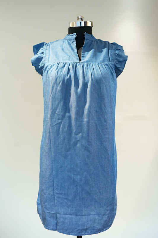Frill Sleeves Denim Style Dress