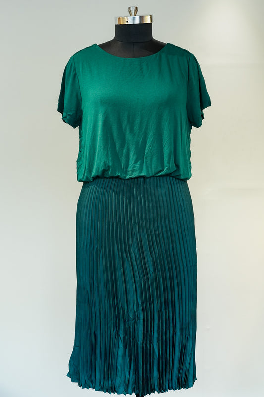 Green Pleated Tshirt Dress