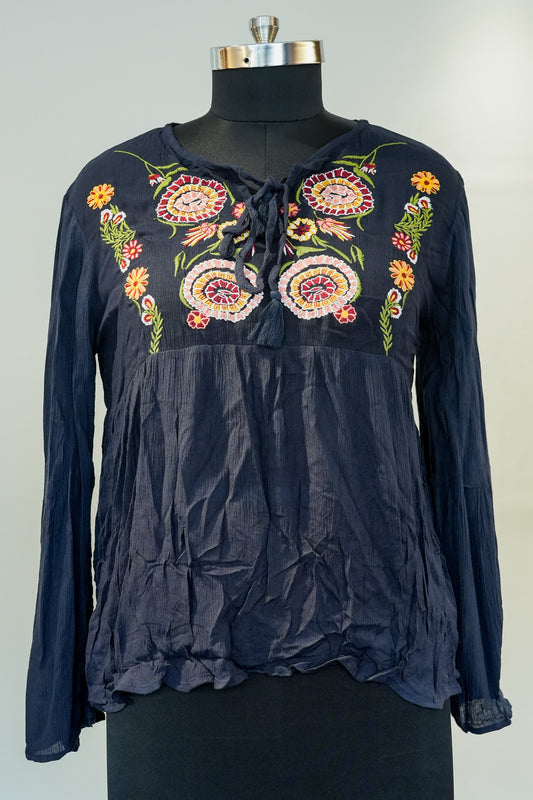 Blue Thread Work Full Sleeves Top
