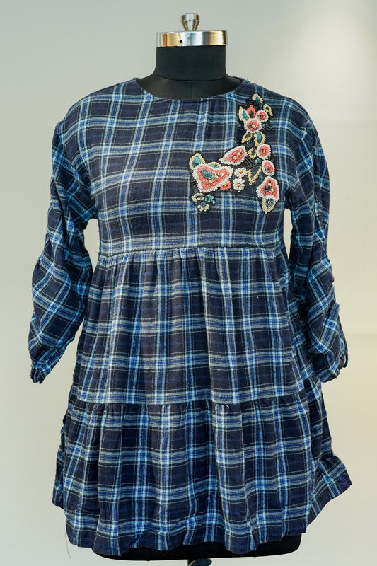 Blue Check Short Dress