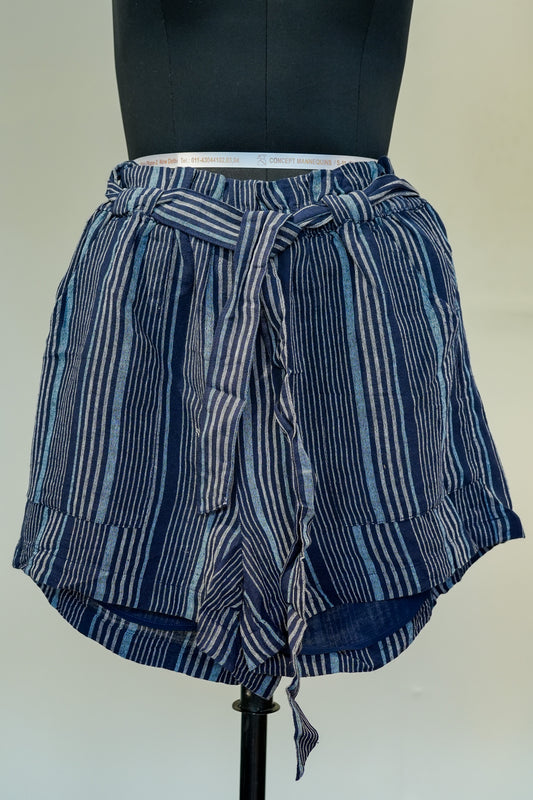 Blue Striped Front Knot Shorts