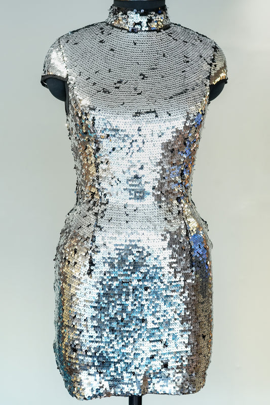 Silver Sequins Work Short Dress