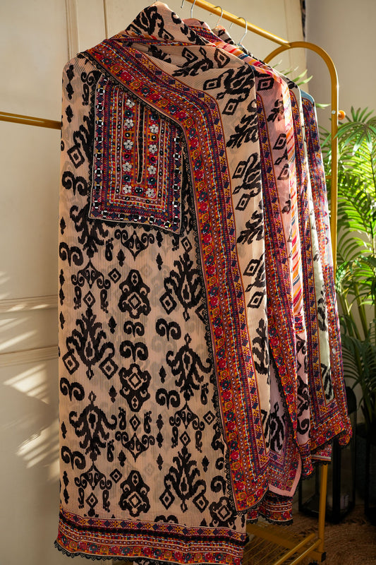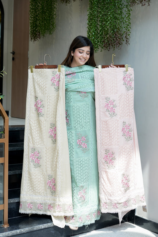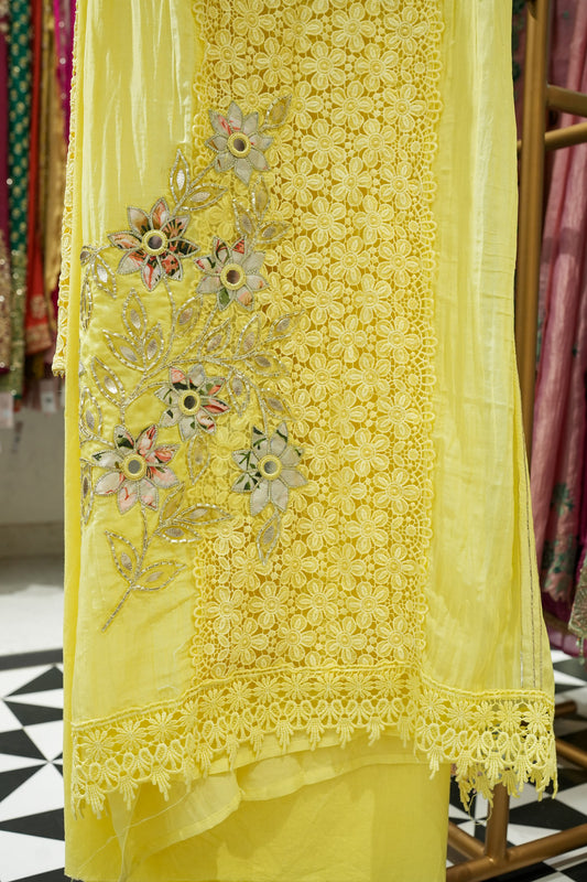 Geena Cutwork Unstitched Suit