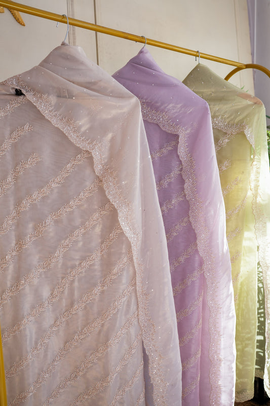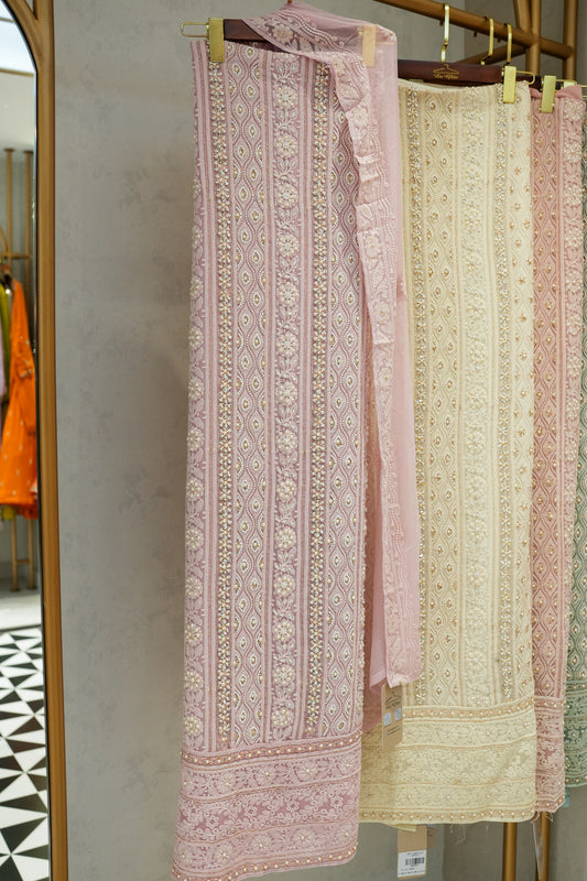 Tuna Georgette Lucknavi Unstitched Suit With Pearls Detailing
