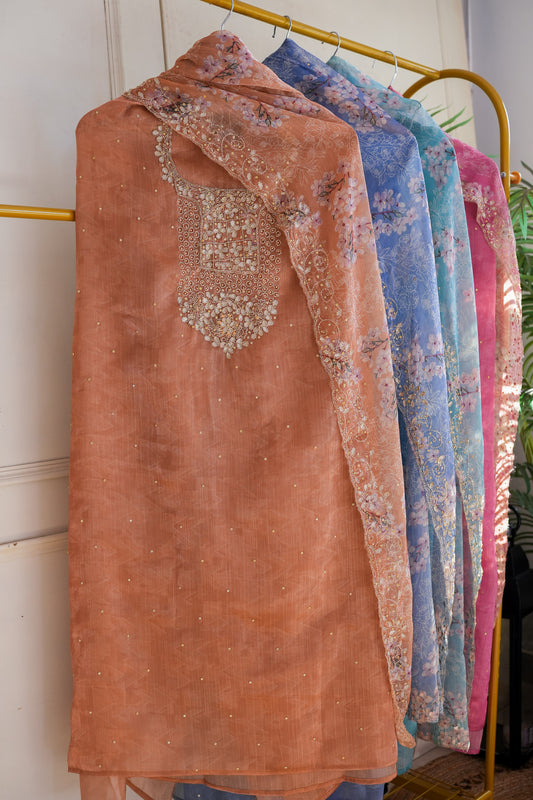 Farahana Printed Organza Unstitched Suit