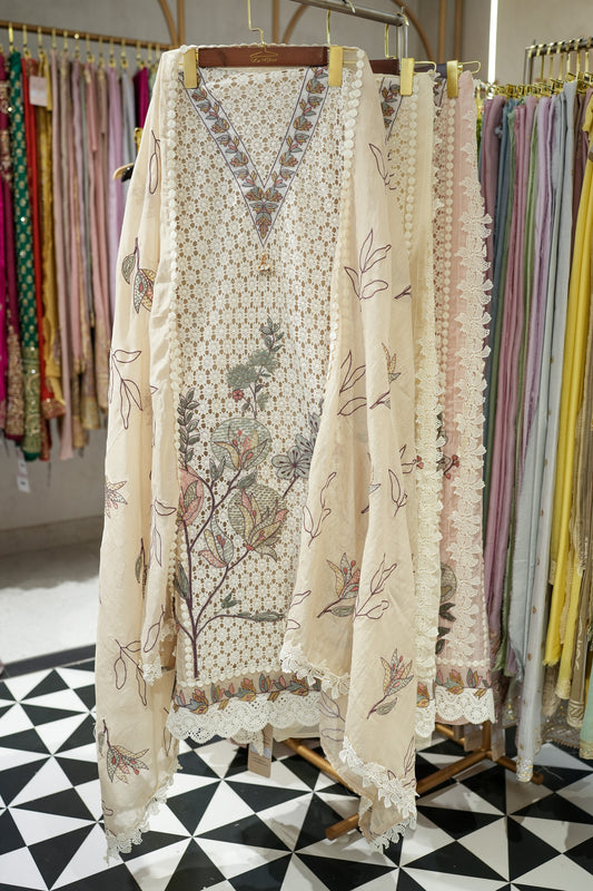 Finah Cotton Schiffli Unstitched Suit
