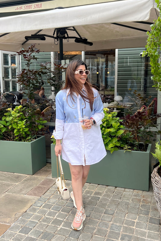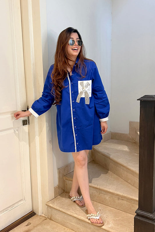 Birch Crystal Bow Detailing Poplin Shirt Dress