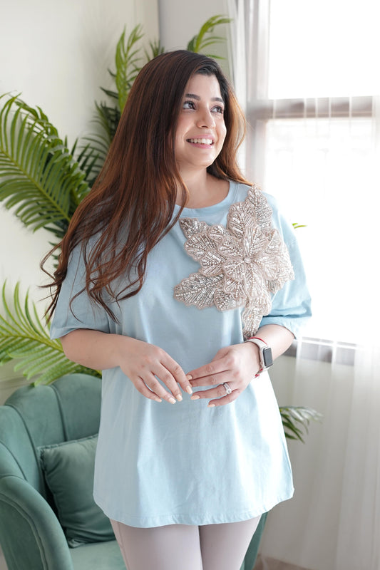 Out of StockVendor:LaGlitsOla Blue Embriodered Loose Fit Top
