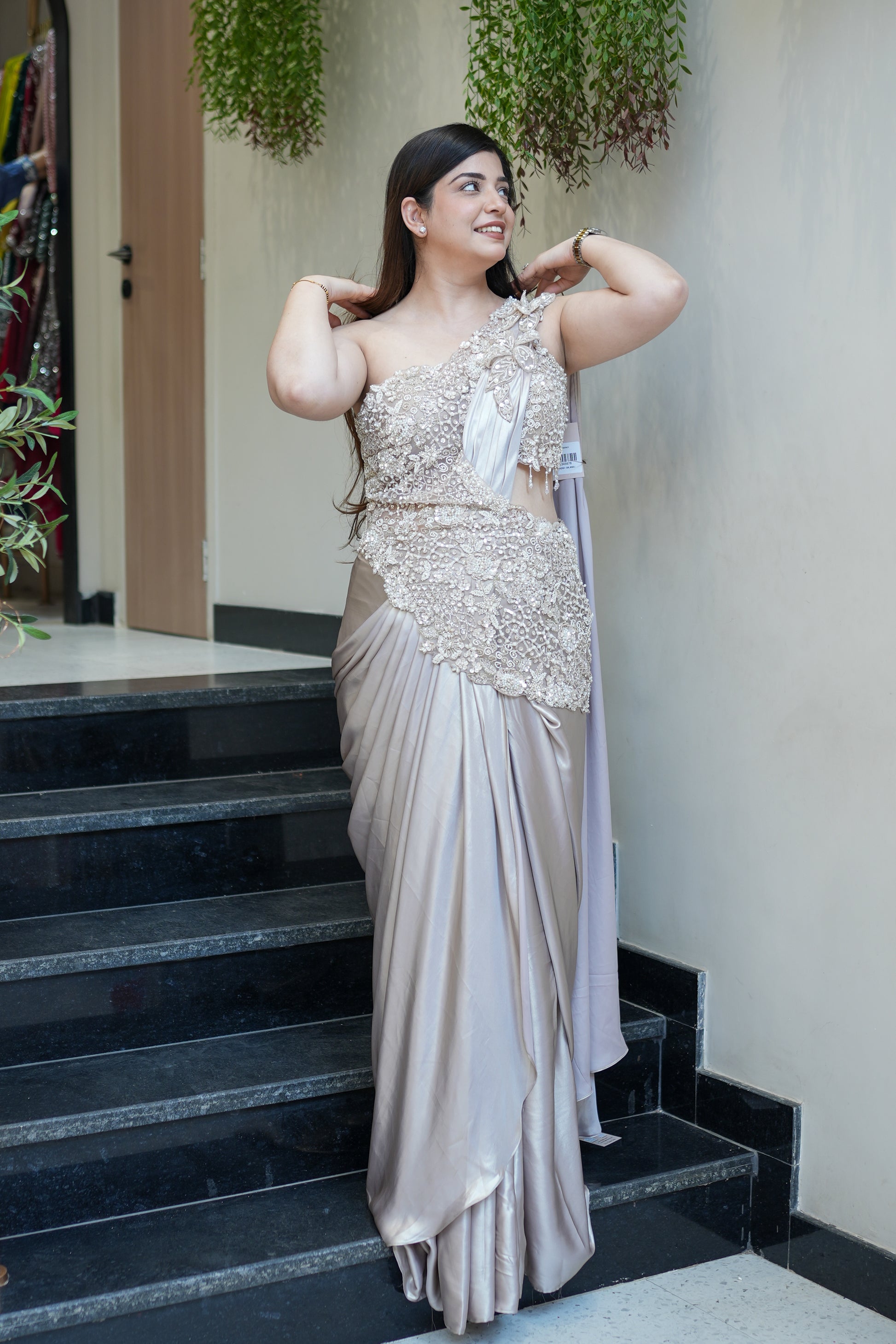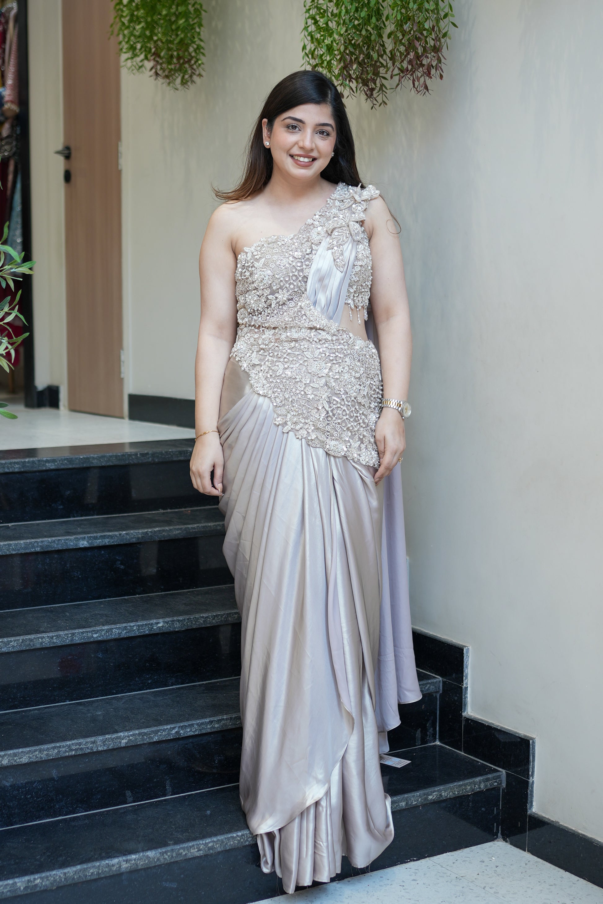 Hand Embroidered all over the Blouse as well as the Saree, can be customized in any size.