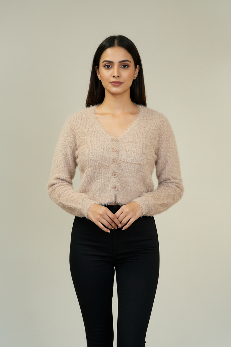 Beige Front Buttoned Frill Top