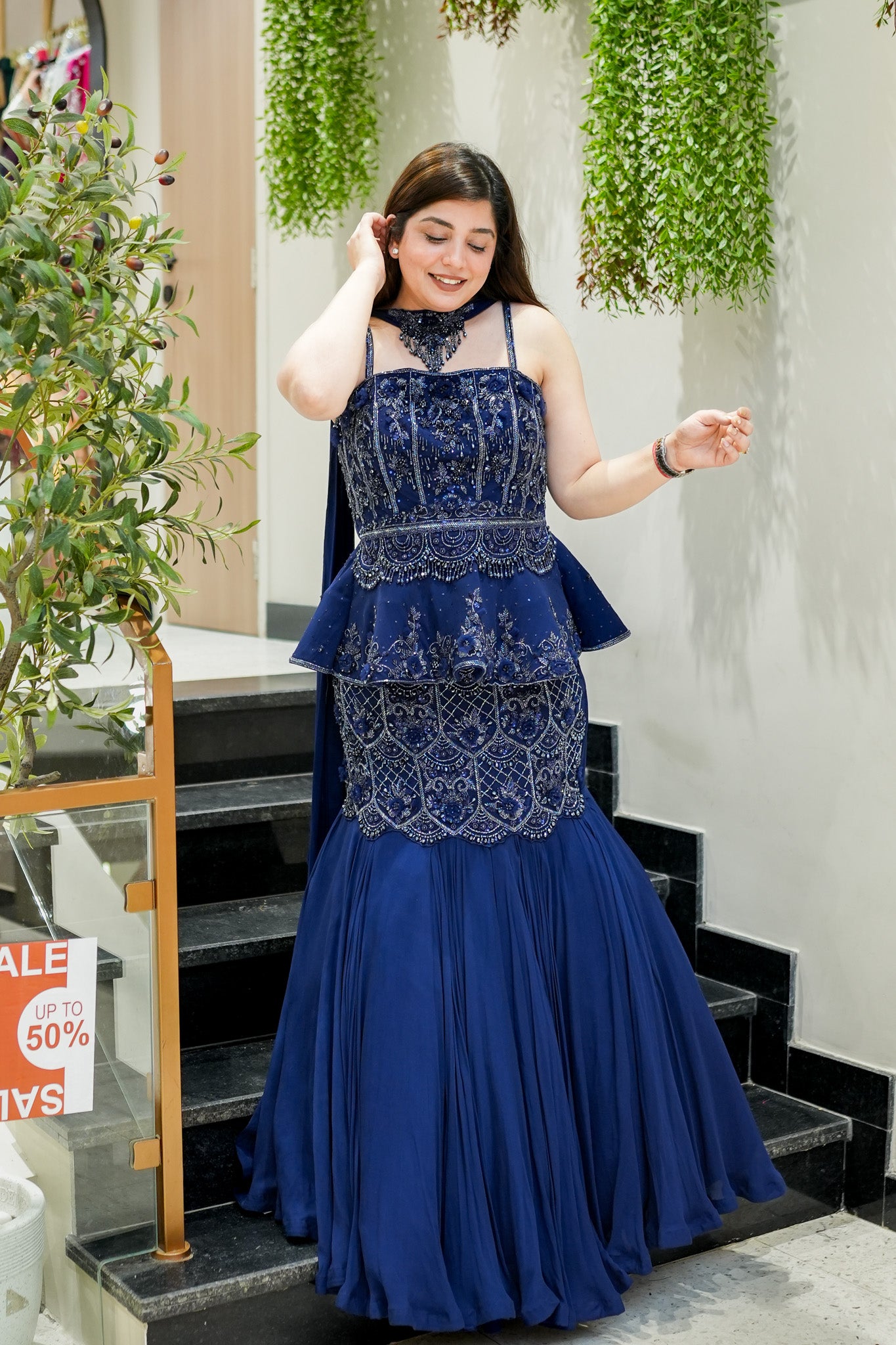 Hand Embroidered Blouse as well as the Fish Cut Lehenga, can be customised in any size.