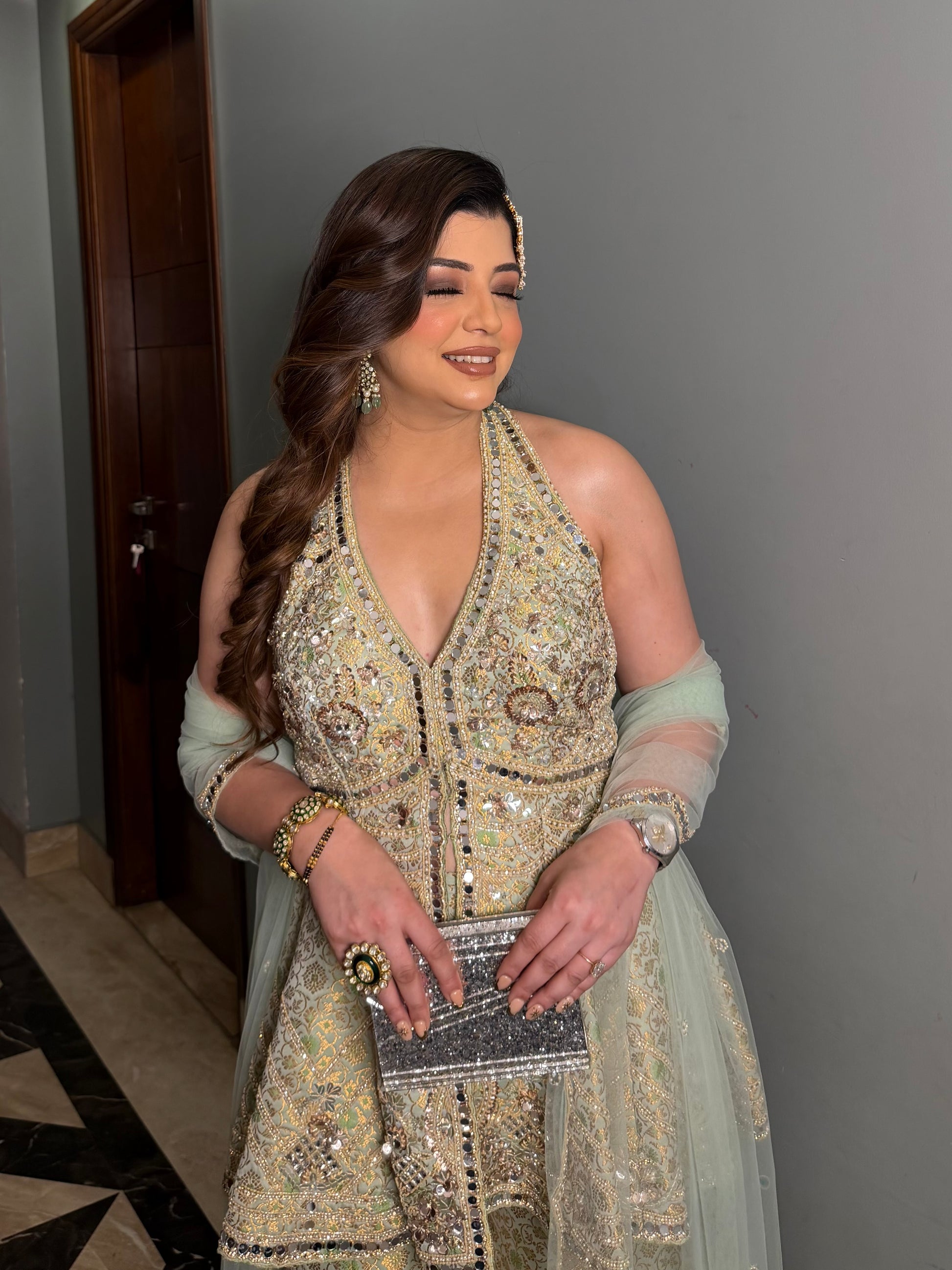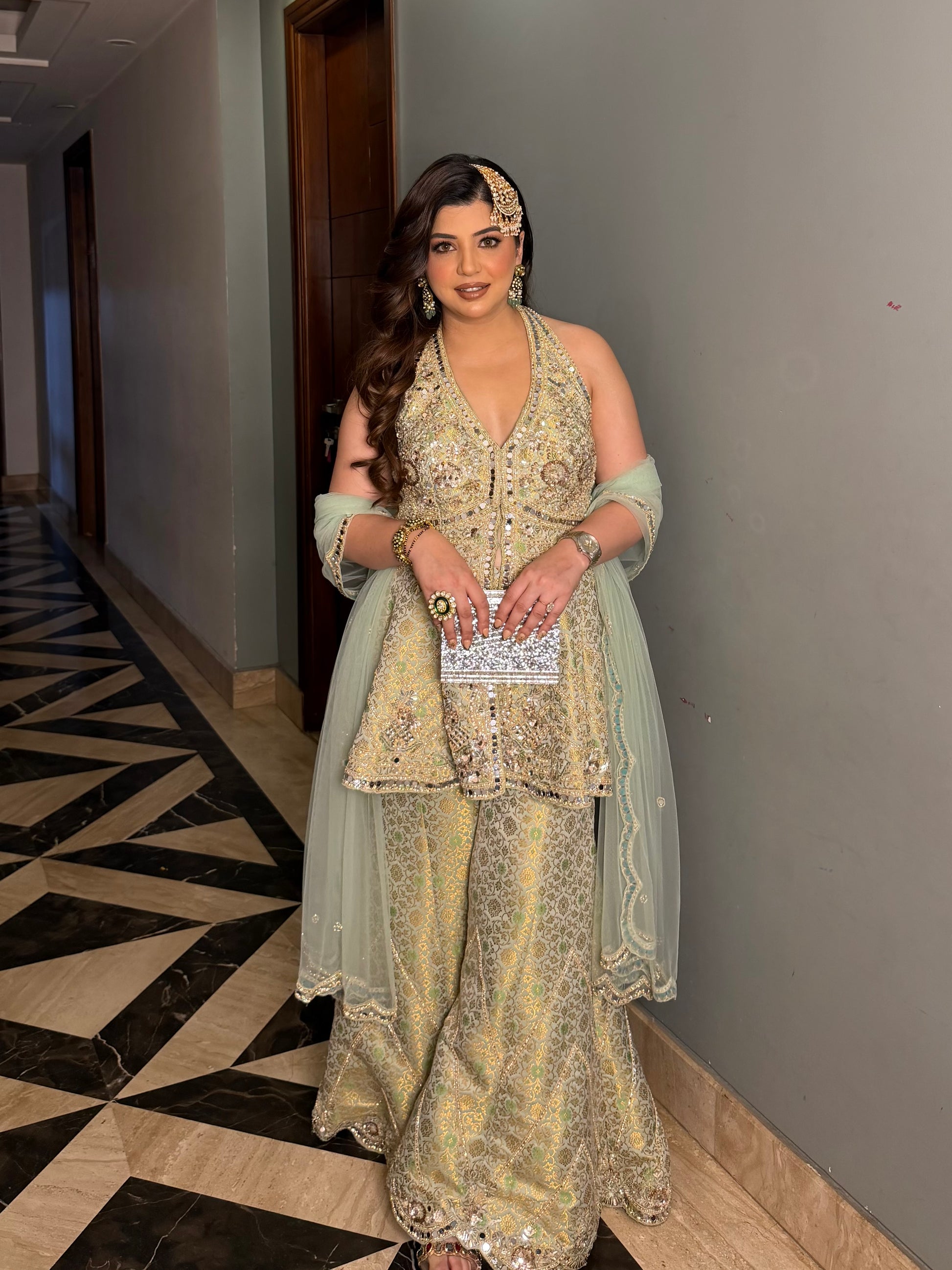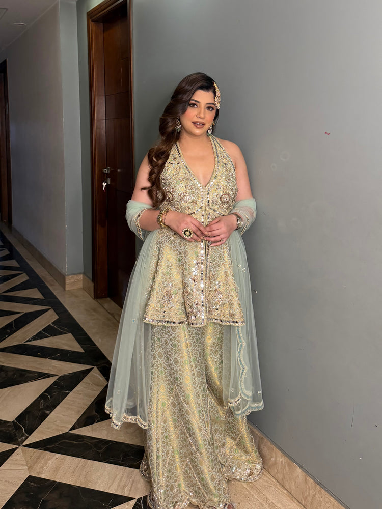 Hiral Mirror Work Halter Neck Suit