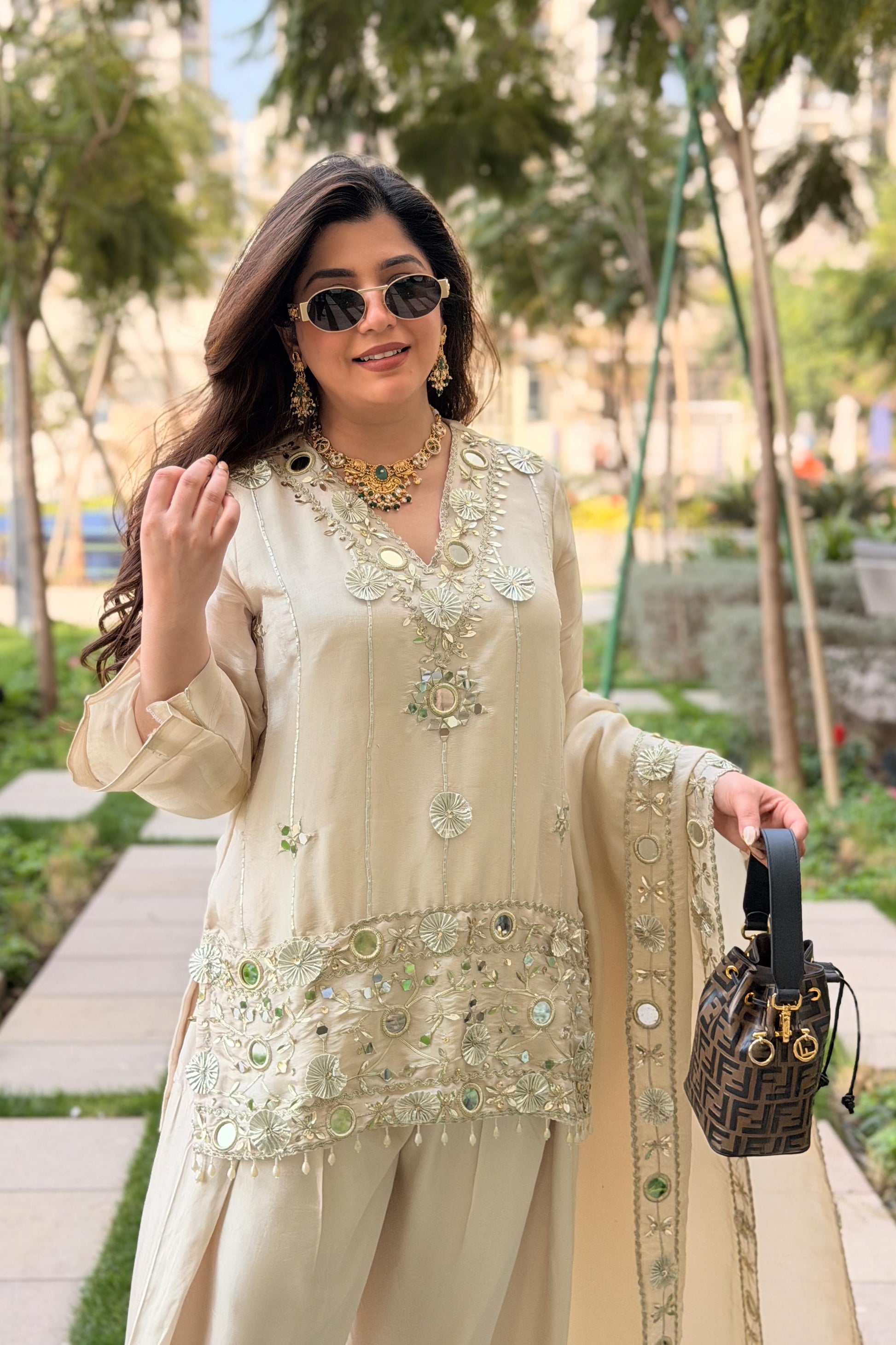 Ifrah Gotta and Mirror Detailing Suit Set