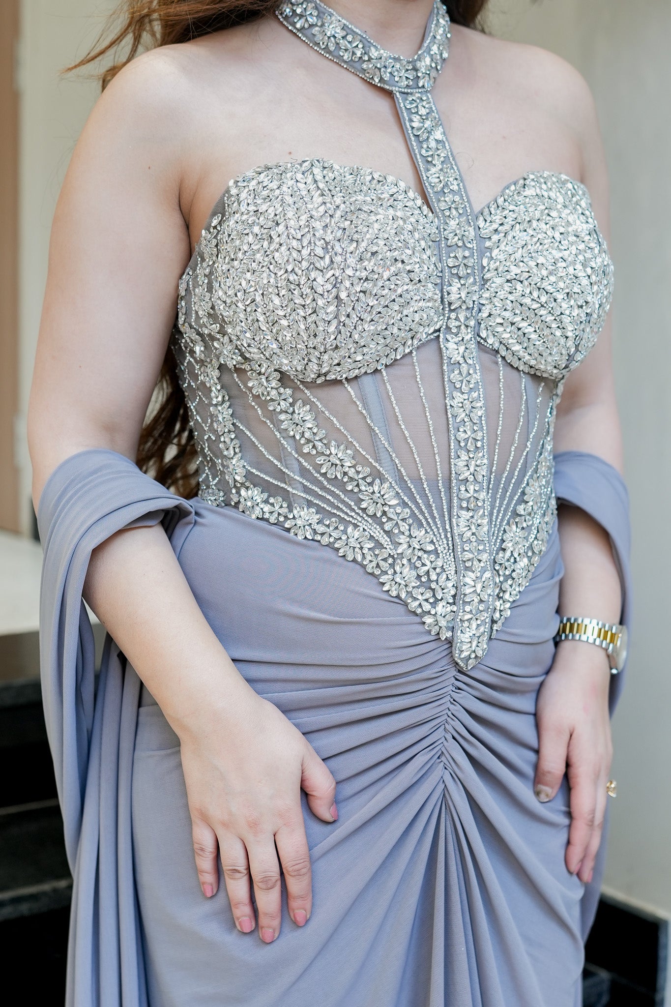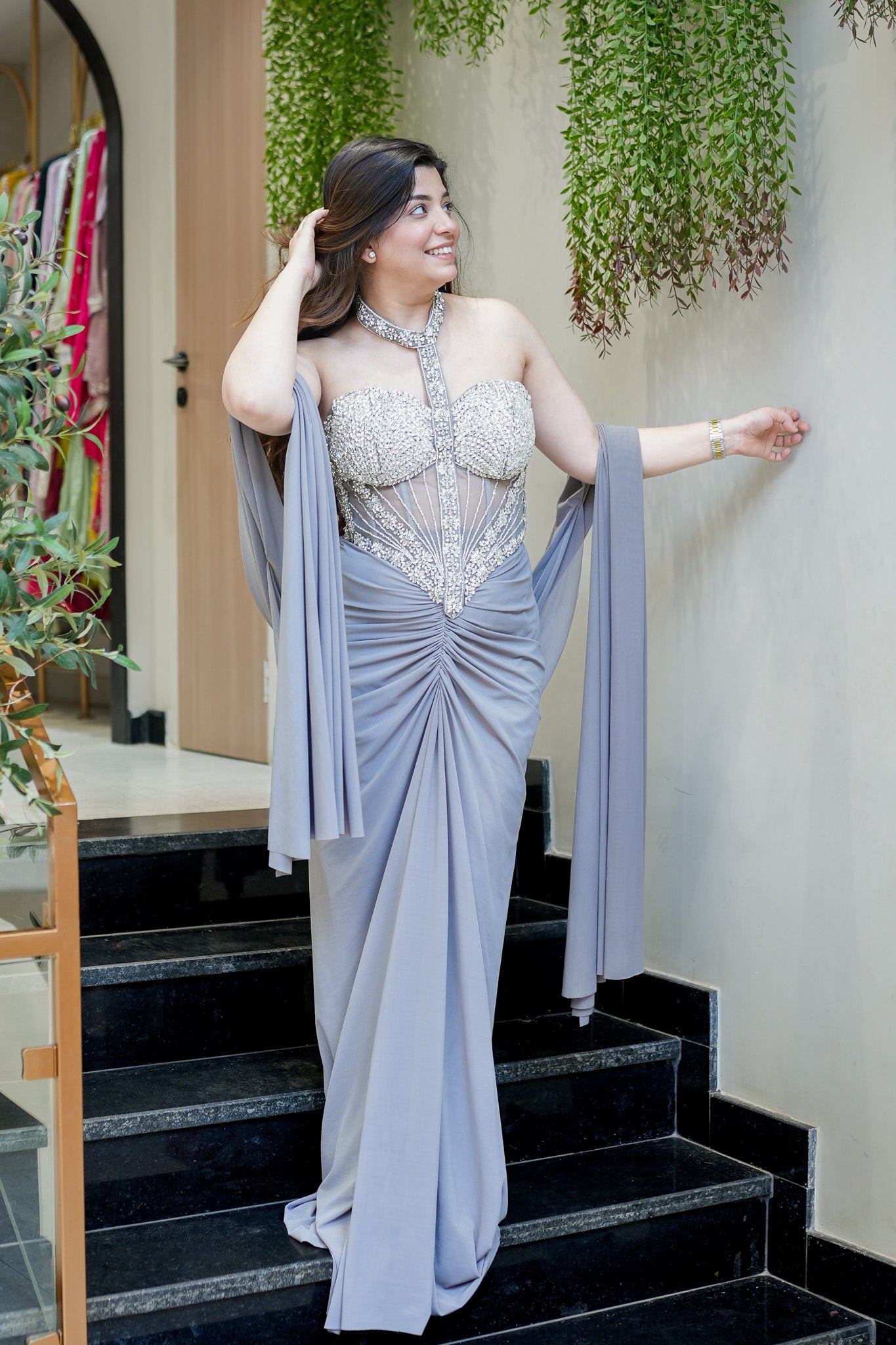 Hand Embroidered Corset with Indo Western, can be customised in any size.