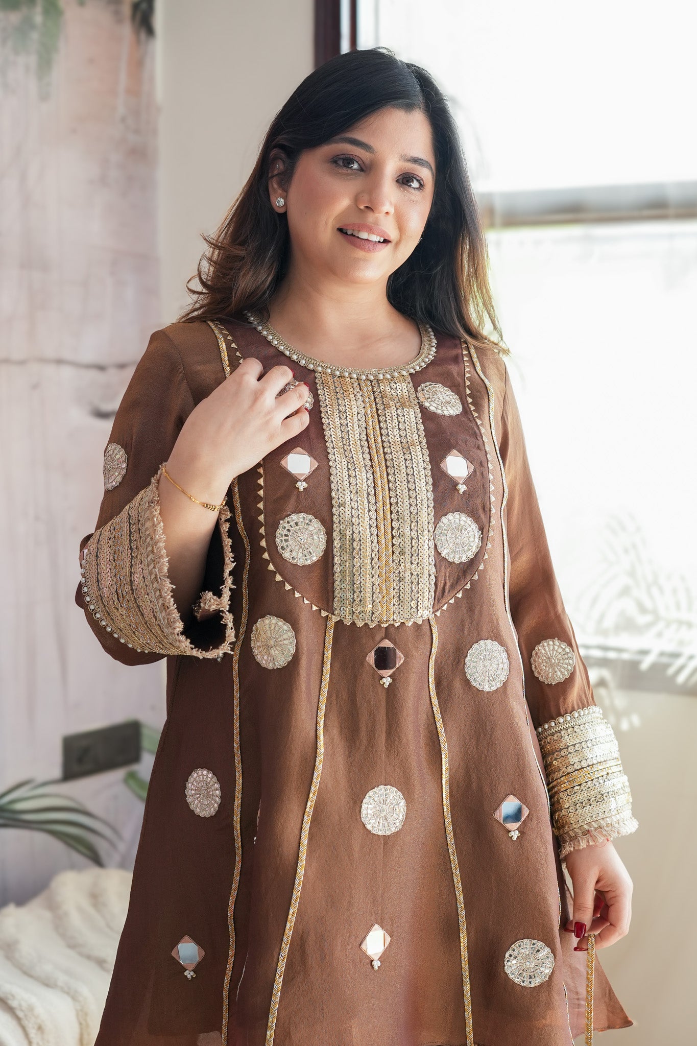 Nirupa Brown Gotta Embellished Cord Set